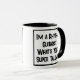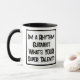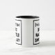 Divertido lema en un tazón de café de dos tonos que dice "Soy un guitarrista de ritmos. ¿Cuál es TU supertalento?". Dos tazas de café para un guitarrista de ritmo o un guitarrista de ritmo. Texto en negrita en blanco y negro.