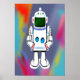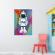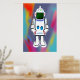Un robot blanco con un fondo colorido. Esta es una obra de arte generada por IA.