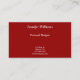Esta tarjeta de visita bonita es perfecta para cualquier negocio o empleo. Ofrece un fondo rojo con las rayas blancas en el top y la parte inferior del frente. Funcionamientos blancos de una raya a través del centro. La parte posterior es un rojo sólido. Todo el texto es adaptable.
