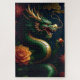 En esta obra de arte digital altamente realista se muestra un magnífico dragón chino en una posición enrollada, con cuernos dorados brillantes y escalas verdes vibrantes. Rodeada de flores vívidas y un cielo nocturno cósmico, esta imagen combina fantasía, cultura y belleza para crear una visión impresionante. Perfecto para posters, merchandising o ideas de tatuajes. Dargon chino con rompecabezas.