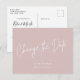 Posposición de boda diseñada por el personalizado/cambio de la postal de fecha con diseño moderno de letras blancas sobre un polvoriento fondo color rosa/rosa negro.