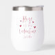 Acogedor con un vaso de rosa de este El día de San Valentín con este vaso de vino que presenta la cita "rosa es mi valentina" adornada con corazones de estilo manual. Personalizar con un nombre o texto personalizado debajo.