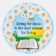 Escena de la salida del sol de un Art Deco rodeada de margaritas con una Biblia abierta y palabras "Vivir por Jesús es la mejor razón para vivir"