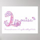 Hermoso cartel con monograma de la letra L perfecto para el dormitorio o la sala de juegos de una niña en tonos de rosa, púrpura y un toque de amarillo limón. Personaliza con tu nombre que comience con L, y el significado del nombre para un toque verdaderamente personalizado en el dormitorio o la guardería de tu hijo, este ejemplo es para el nombre Louisa Guerrera renombrada. Un líder capaz e inteligente. Impresión de cartel lindo ideal para un nuevo bebé, regalo de bautizo o nombre de bebé, o para el dormitorio de un niño. © Diseño de arte gráfico y dibujo de corazones y flores con monograma de letra L único por Sarah Trett para www.mylittleeden.com