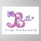Hermoso cartel con monograma de la letra B perfecto para el dormitorio o sala de juegos de una niña en tonos de gris, blanco, amarillo, rosa y morado. Personaliza con el nombre corto de tu hijo que comience con B, y el significado del nombre para un toque verdaderamente personalizado en el dormitorio o guardería de tu hijo, este ejemplo es para el nombre B Beth House of figs. Bendecido con generosidad y estilo. Impresión de cartel ideal para un nuevo bebé, regalo de bautizo o baby shower. © Diseño y arte gráfico único de monograma de la letra B con corazones y flores por Sarah Trett. www.sarahtrett.com para www.mylittleeden.com