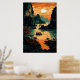 El Sol se eleva sobre el Poster del río Arte en la