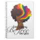 Este cuaderno tiene una imagen de una mujer afroamericana con el pelo natural. Las rayas del arco iris en su pelo representan la bandera de LGBT.
