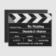 Una divertida y única boda en blanco y negro salva el diseño del imán de fechas muestra los detalles importantes en la pizarra de películas y la pizarra de un director de Hollywood. Personaliza con el nombre de las "estrellas" y los detalles de tu gran "estreno" como marido y mujer.