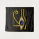 Tapiz con el símbolo del Ojo de Orus de protección en el Antiguo Egipto para tu casa o muro de oficinas. Este diseño de tapicería presenta el Ojo de Horus en jeroglíficos descoloridos y ojos de Horus.