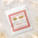 El género con la temática Baby-Q revela las bolsas de favores. Apellido editable.