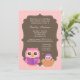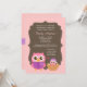 Una ducha de bebé con tema de libro rosa es perfecta para traer un libro para mamá, para que pueda construir una biblioteca y leer cada noche una historia para el bebé. Esta invitación a la ducha de bebé búho es justo para ella con sus lindos búhos. La lechuza madre está leyendo un libro de cuentos para su bebé que lleva una gorra nocturna y que está amurallando en el nido. Las opciones de color dulce y adorable de rosa y púrpura, y los puntos de polka lo hacen perfecto para mamáes que están teniendo niñas. Personalice con facilidad los detalles de la ducha de bebé en el espacio marrón disponible.