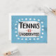 "El tenis está subestimado" es un diseño de texto divertido y chunco con una forma de acento blanco rodeado de adorables puntos de polka blancos.