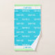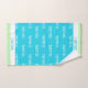 Toalla de mano del sudor del jugador de tenis hecha en azules turquesas con una banda de verde y de blanco, en ambos extremos. El tenis blanco de la lectura del modelo del texto cubre el área azul, de la toalla. El nombre de encargo azul en cada extremo de la toalla, está listo para personalizar para sí mismo o como gran idea para un regalo.