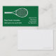 Tarjetas de visita de los deportes con símbolo de la estafa de tenis y la gran disposición de la tarjeta de visita que usted puede modificar para requisitos particulares. Diseñado como plantilla de la tarjeta de visita para un club de tenis, una liga, un instructor, o una asociación.
