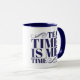 El tiempo del té es yo la taza del tiempo, 11oz, marina de guerra. © MartinaFaulkner para las palabras y el diseño.