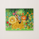 Enorme, amigable y adorable ligador personalizado llevando a sus amigos a un paseo :) león, tigre, leopardo e incluso un leopardo de las nieves están disfrutando de un paseo con su amigo sobredimensionado :) en una colorida, fantástica y mágica y me atrevo a decir jungla psicodélica. Personalizable completo.