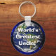 Cadena de claves de Guay con una foto original de la Tierra en el espacio, de color, fotografía cortesía de la NASA en el dominio público. Muchos conceptos para el Día de la Tierra, paz, unidad, armonía, calentamiento global, trabajo en equipo, ecología, medio ambiente, esperanza, amor, viajes, etc. Se muestra "¡el tío más grande del mundo!" que es genial para el Día del Padre o su cumpleaños, etc. ¡Muéstrale a tu tío lo que sientes por él!