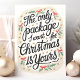 Comparte un poco de alegría navideña juguetona con esta tarjeta de Navidad coqueta que presenta el mensaje, "El único paquete que quiero para Navidad eres tú". Perfecta para parejas románticas y cualquiera que aprecie un poco de humor descarado, esta tarjeta añade un toque de diversión a la temporada navideña. Rodeada de acentos festivos de acebo y cinta, es una forma única y memorable de expresar afecto durante las fiestas.