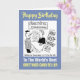 Tarjeta de cumpleaños de papelería. Una tarjeta de cumpleaños para el mejor vendedor de tarjetas de felicitación del mundo. Feliz cumpleaños propietario de la tienda de tarjetas de felicitación.