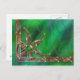 Un trabajo abstracto en verde brillante y cobre. Una joya verde clara está rodeada de hojas de cobre de césped acentuadas con espumosas esmeraldas y estallidos naranjas. Los fractales ondulados, curvados en el fondo aparecen en un fondo verde, marrón y naranja más profundo dentro del filigree de cobre del motivo de la hoja.