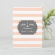 Las invitaciones nupciales personalizadas del alumerzo con el vintage ancho encienden el modelo rosado y blanco del melocotón de las rayas, el marco rústico del gris de carbón de leña, y los detalles náuticos. Personalizable con su texto.