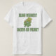 Las características del diseño del día de este St Patrick divertido un trébol sonriente del dibujo animado con una barba, un tubo, y un sombrero de copa verde grande y el subtítulo "whisky irlandés me hacen juguetón" en texto verde grande.