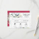 Esta postal del recinto RSVP de respuesta al evento boda con 3 opciones de comida presenta un elegante estilo minimalista moderno con formas de hojas de vegetación acuáticas y hermosas caligrafías y tipografías limpias y serif sobre fondo viva magenta. La sencillez y el diseño limpio de esta tarjeta de gabinete de respuesta RSVP de boda funciona bien con todos los temas bodas y definitivamente una gran incorporación a su boda. Sólo personalizar los nombres de la pareja, fecha, 3 opciones de comida, y otra información en unos pocos pasos fáciles y personaliza para darle un agradable toque personal. Iconos de la comida disponibles: pavo, oca, venado, pato, cordero, cerdo, carne de res, pollo, mariscos y vegetariano. Si desea cambiar los iconos de las comidas, haga clic en el botón "editar usando la herramienta de diseño" para personalizar las opciones de las comidas. Por favor, tenga en cuenta: la elegante y bella tipografía de frases de "responder amablemente" y "entregar amablemente" junto con las disposiciones de hojas de eucalipto de color verde acuático y otros elementos de arte gráfico como las líneas y las cajas rectangulares no pueden editarse, cambiarse, moverse o eliminarse. Están arreglados.