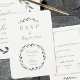 Un correo de retorno RSVP con opciones de comida, con una rama de olivo pintada de acuarela y corona con tu nombre y apellidos dentro de la corona.