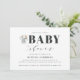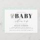Elefante acuático pequeña invitación a una fiesta para bebés. Con delicados detalles de puntos de polka verde y blanco, ideal para bebé, niño, sorpresa o sexo revelan ducha de bebé. Parte de una colección.