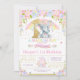 Empieza el primer fiesta de cumpleaños de tu hijo con un golpe con esta magnífica invitación personalizada de Floral Rainbow Elephant! Con bonito acuarela floral, un bonito elefante, un arcoíris de colores pastel y detalles falsos de purpurina dorado. Personalice esta invitación con el nombre, edad y detalles del fiesta de su hijo de forma fácil y rápida, simplemente presione el botón personalizar para reorganizar y formatear el estilo y la ubicación del texto. ¡Esta impresionante invitación a unicornio seguramente causará una impresión! c) El estudio Happy Cat Studio