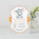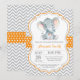 Elephant Baby Shower Invitation Naranja y tarjeta gris. Invitación del chica Baby Shower. Chevron gris. Cinta púrpura. Para una mayor personalización, haga clic en el botón "Personalizar" y utilice nuestra herramienta de diseño para modificar esta plantilla.