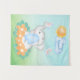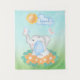 Cuidada acuarela elefante bebé con mariposas rosas azules y flores naranjas.