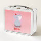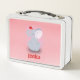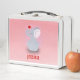 Dulce elefante bebé sentado con el corazón rojo sobre fondo rosado. Monograma opcional