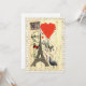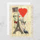 Un animal de elefante vintage divertidísimo y jovial, con globos en forma de corazón valentino rojo, con la torre Eiffel. París, Francia en un diseño retro de postal antiguo, con pavo real y mariposa. Visite la TIENDA de VINTAGEPRINTS para más diversión ilustracion vintage, románticos regalos día de San Valentín.