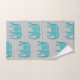 Toalla ambientada en un gráfico digital de medios mixtos de un elefante contra un fondo de baldosa arabesco - Patrón de flores de Mandala en turquesa, blanco y tonos grises / grises contra un fondo gris plateado
