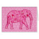 Dibujo digital de patrones mixtos de un elefante ricamente embellecido contra un fondo de baldosa arabesco - tonos rosas desde rosa pálido a fucsia profunda