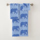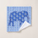 El sistema de la toalla en un gráfico digital de las técnicas mixtas de un elefante contra un arabesque tejó el fondo - elefante con un blanco, de encaje, modelo del azul de cobalto de Paisley