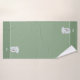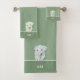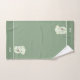Un elefante lindo sostiene un corazón y un monograma sobre los tonos verdes del juego de toallas de baño. El monograma puede ser personalizado. ¡Ideal para todos!