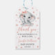 Un chica elefante de color rosa pálido, etiquetas de regalo para la ducha de bebé chica.