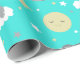 Un patrón con elefantes lindos, estrellas y luna sobre un fondo turquesa.