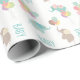 El papel de embalaje temático del bebé dulce hecho en blanco con los gráficos de los elefantes coloridos lindos que sostenían ramos de globos y de aguamarina coloreó al bebé de la lectura del texto. Modifique este papel de embalaje para requisitos particulares del bebé para añadir su propio texto.