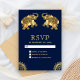 Elegante tarjeta RSVP con elefantes hermosamente decorados con un fondo azul oscuro.