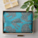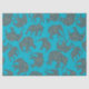 Una hoja de divertido Papel Tejido al personalizar, con siluetas elefantes, llenas de un patrón Paisley azul oscuro y borgoña, sobre un fondo azul turquesa que se puede cambiar si se desea. Parte de la colección "Heffalumps" de Posh & Painterly.