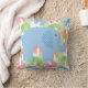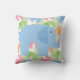 Elefantes en la almohada del desfile con un elefante azul grande y muchos elefantes más pequeños de azul, naranja, verde y rosa.