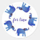 Hermoso dibujo de elefantes azules, pegatina personalizado. Añade tu nombre.