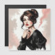 Portrait d'une femme brune au style sophistiqué, vêtue de noir, avec une expression intense et mystérieuse.