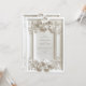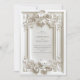 Disfrute de la grandeza del barroco con esta suntuosa invitación a la boda. El diseño rebosa de opulencia con sus fastuosas esculturas en diferentes tonalidades de marfil, crema y blanco, que recuerdan a las elaboradas obras de yeso. El lujoso efecto de emparejamiento da profundidad a los motivos florales y de hojas de acanthus, creando una interacción de luz y sombra que es a la vez dramática y delicada. En el centro, un tipo de letra limpio y clásico presenta los detalles de los futuros nupciales de la pareja, ambientados en el fondo del efecto de papel texturizado. Esta invitación es una elección sofisticada para las parejas que buscan hacer una declaración de elegancia eterna en su día especial.