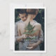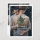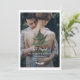 Esta minimalista y elegante invitación de ampliación de bodas presenta dos de tus fotos, con un simple superpuesto botánico y de texto en blanco en la parte delantera, y espacio para tu mensaje adicional en la parte posterior. El frente también dice "nos fugamos" en escritura manuscrita.