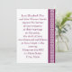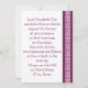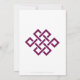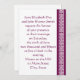 Trae un toque de estilo oriental a tu evento con esta invitación de boda con una profunda frontera de vinos en el lado derecho, decorada con un patrón geométrico inspirado en las obras de arte chinas. El lado izquierdo de la tarjeta tiene mucho espacio para todos los detalles de su evento especial con algún texto de ejemplo en su lugar que se puede personalizar para que se ajuste a sus necesidades. Un nudo de buena suerte chino en el vino termina las cosas en la parte trasera para crear una nota final elegante. No olvide visitar los otros productos de la elegancia china en vino para crear un ambiente realmente coordinado para su evento.