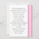 Trae un toque de estilo oriental a tu evento con esta invitación de boda con un borde rosado pétalo en el lado derecho, decorado con un patrón geométrico inspirado en las obras de arte chinas. El lado izquierdo de la tarjeta tiene mucho espacio para todos los detalles de su evento especial con algún texto de ejemplo en su lugar que se puede personalizar para que se ajuste a sus necesidades. Un nudo chino de buena suerte de color rosa pastel termina todo en la parte trasera para crear una nota final elegante. No olvide visitar los demás productos de la elegancia china en Petal Pink para crear una imagen verdaderamente coordinada para su evento.